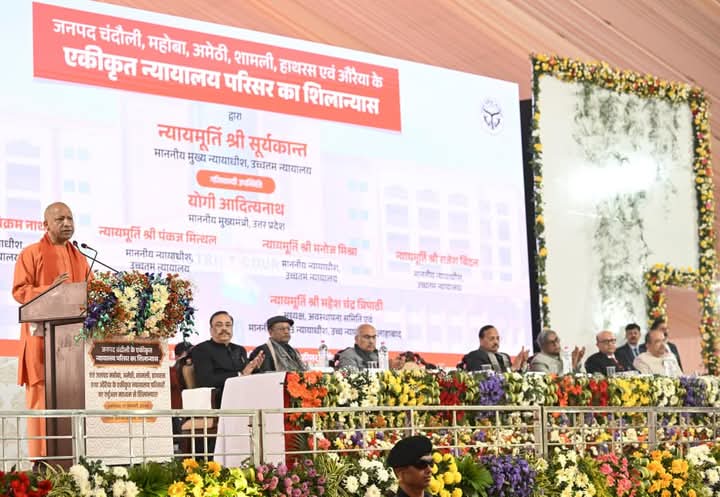 Chandauli News: दिनांक 17 जनवरी दिन शनिवार को माननीय मुख्य न्यायाधीश, उच्चतम न्यायालय, न्यायमूर्ति श्री सूर्यकान्त द्वारा एकीकृत न्यायालय परिसर की आधारशिला रखी गई। इस कार्यक्रम में उत्तर प्रदेश के मुख्यमंत्री मा0 योगी आदित्य नाथ जी की गरिमामयी उपस्थिति में कार्यक्रम के माध्यम से चंदौली समेत महोबा, अमेठी, शामली, हाथरस और औरैया में एकीकृत न्यायालय परिसरों के शिलान्यास के कार्यक्रम भी संपन्न हुये। माननीय मुख्यमंत्री जी ने कार्यक्रम के दौरान अपने वक्तव्य में कहा कि लोकतंत्र के सशक्तिकरण के न्यायपालिका का सशक्त होना बेहद जरुरी है। उत्तर प्रदेश सरकार के पास न्यायिक व्यवस्था से संबधित जो भी कार्य आते है उन्हें निश्चित अवधि में पूरा होने में कतई देरी नहीं होती है। इस मौके पर माननीय मुख्यमंत्री जी ने माननीय मुख्य न्यायाधीश एंव उपस्थित रहे माननीय न्यायमूर्तिगण का अभिनंदन किया और अधिवक्ता बंधुओं को शुभकामनायें दी।