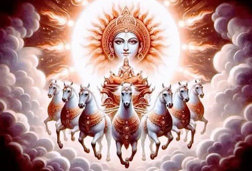 ‘ॐ भूर्भुवः स्वः।तत्सवितुर्वरेण्यं।भर्गो देवस्य धीमहि।धियो यो नः प्रचोदयात्॥ जिसका अर्थ है कि हम परम तेजस्वी सूर्यदेव का ध्यान करते है, जो हमारी बुद्धि को सन्मार्ग पर ले जाने के लिये प्रेरित करते है। ॠगवेद के तीसरे मडंल के 62 वें सूक्त में वर्णित गायत्री मंत्र महर्षि विश्वामित्र द्वारा रचित जगत रौशन करने वाले सूर्य देव को समर्पित सबसे प्राचीन शक्तिशाली मंत्रों में से एक है।